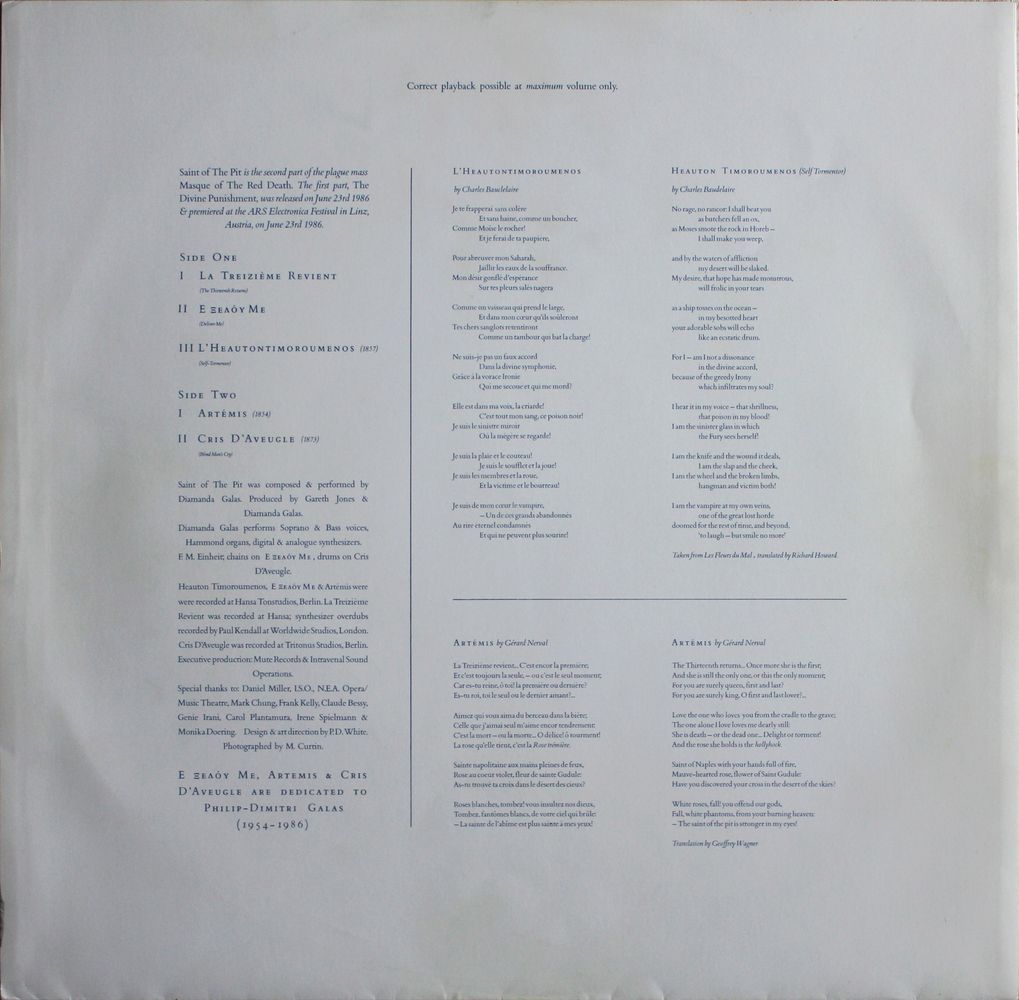 Diamanda Galas – Saint Of The Pit