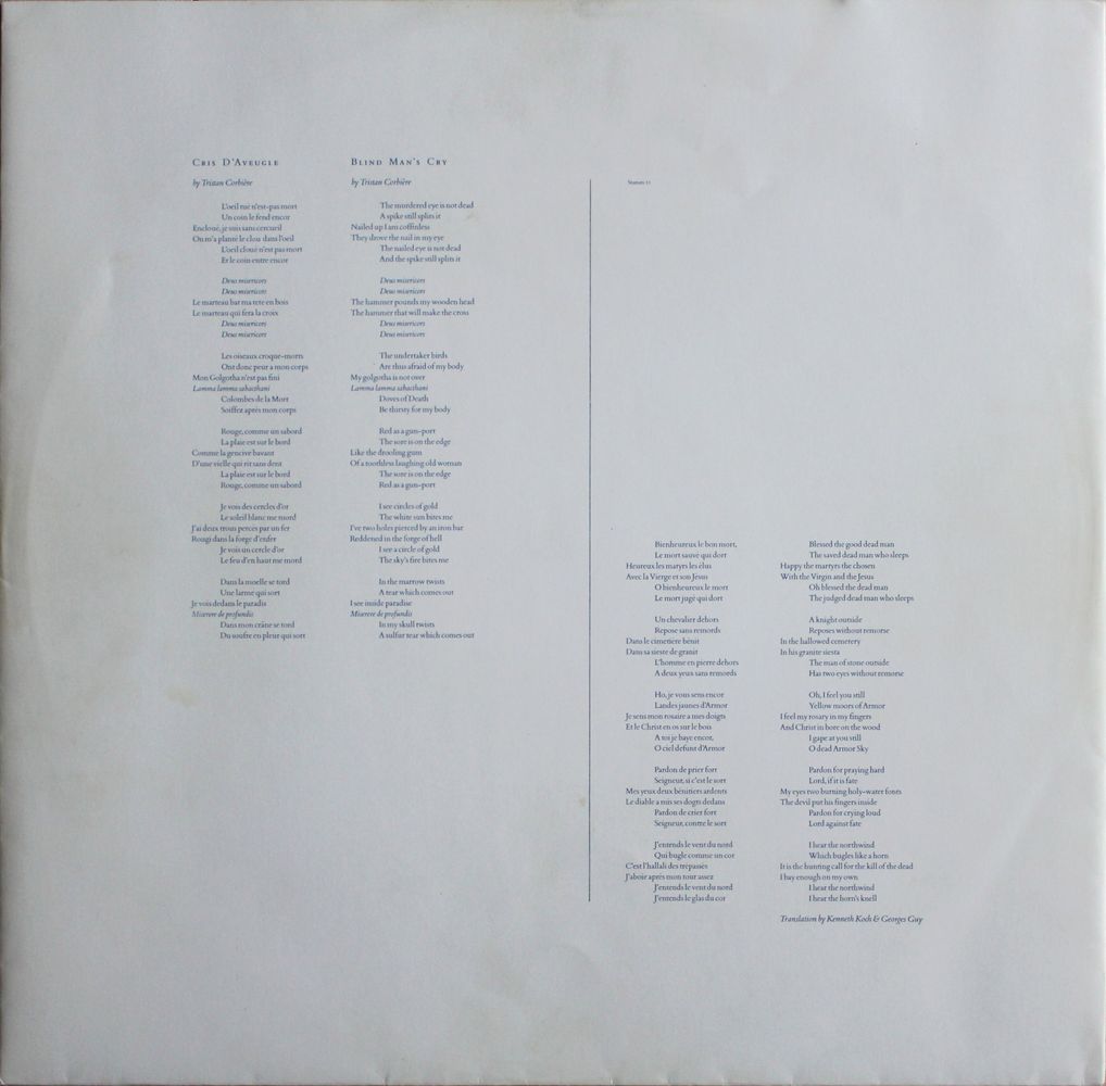 A1 La Trezième Revient (The Thirteenth Return) A2 E Ξeaóy Me (Deliver Me) A3 L'Heautontimoroumenos (1857) (Self-Tormentor) B1 Artémis (1854) B2 Cris D'Aveugle (1873) (Blind Man's Cry)