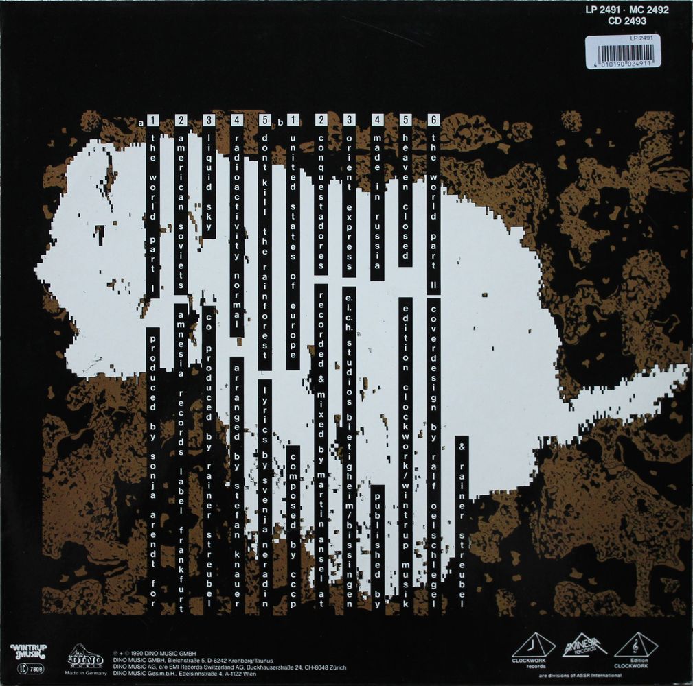 A1 The World Part I A2 American Soviets A3 Liquid Sky A4 Radioactivity Normal A5 Don't Kill The Rainforest B1 United States Of Europe B2 Conquestadores B3 Orient Express B4 Made In Russia B5 Heaven Closed B6 The World Part II